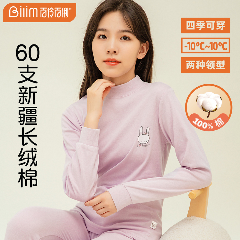 青少年纯全棉毛衫秋衣秋裤套装少女可爱大童保暖内衣初中高中学生