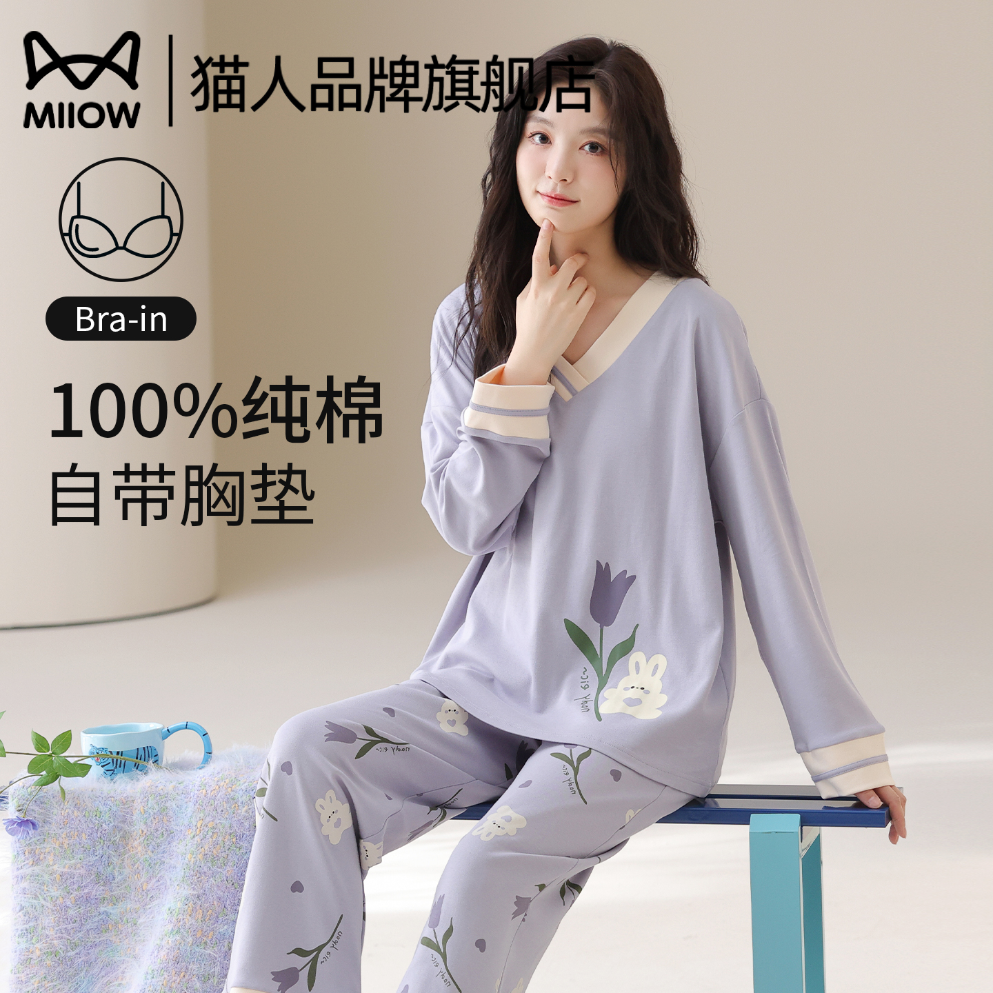 猫人睡衣女春秋2025新款棉柔卡通甜美可爱少女长袖长裤家居服套装