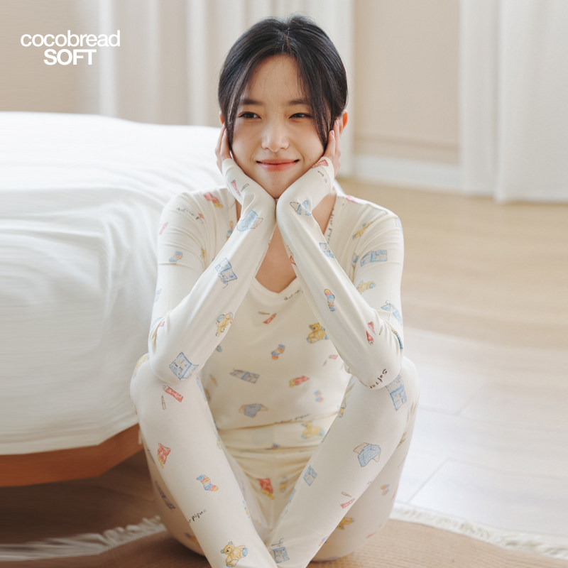 秋衣秋裤女士纯棉套装圆领可爱少女保暖内衣修身薄款印花内穿冬季