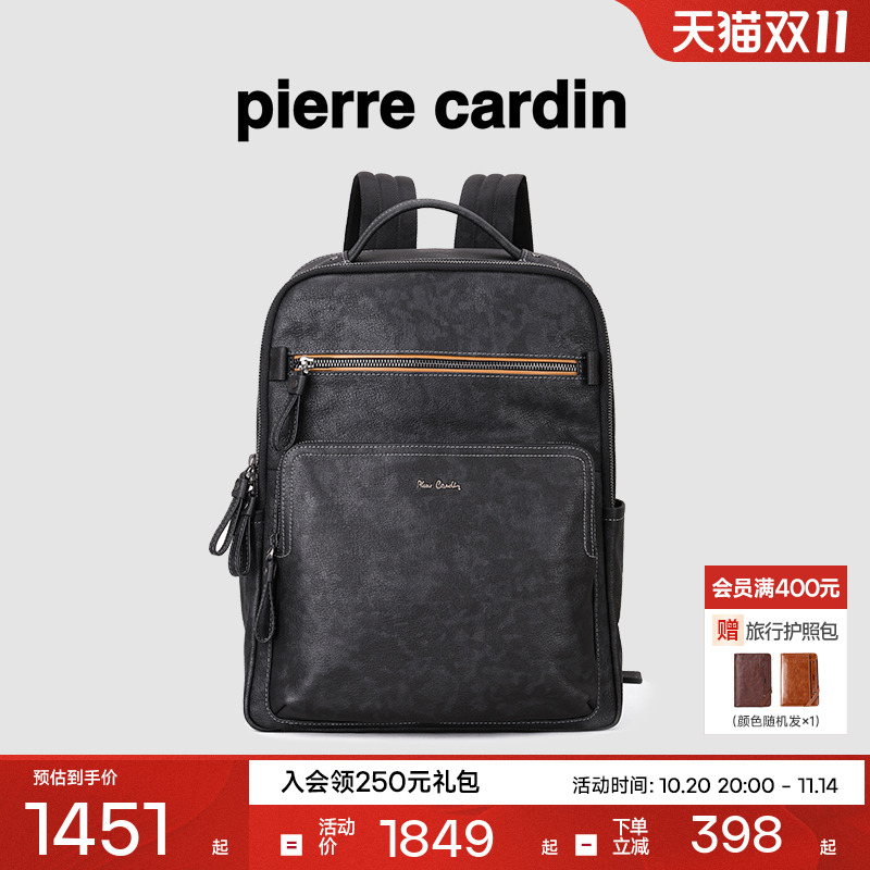 【真皮】皮尔卡丹男包大容量双肩包男士商务电脑通勤背包出差旅行