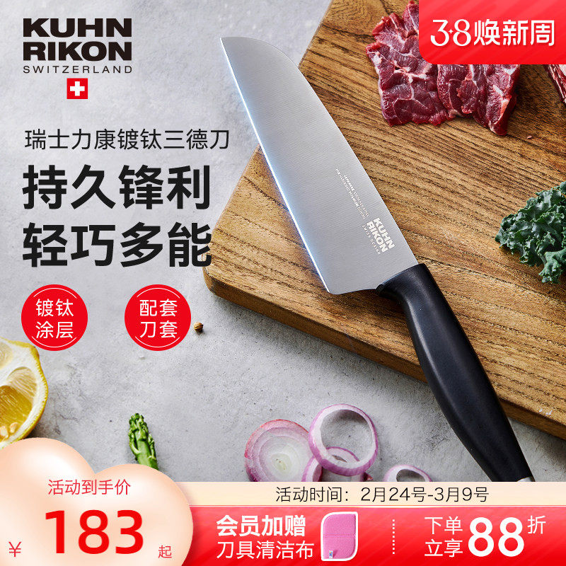 瑞士力康镀钛三德刀不锈钢切菜刀家用切肉切片刀菜刀主厨刀厨师刀