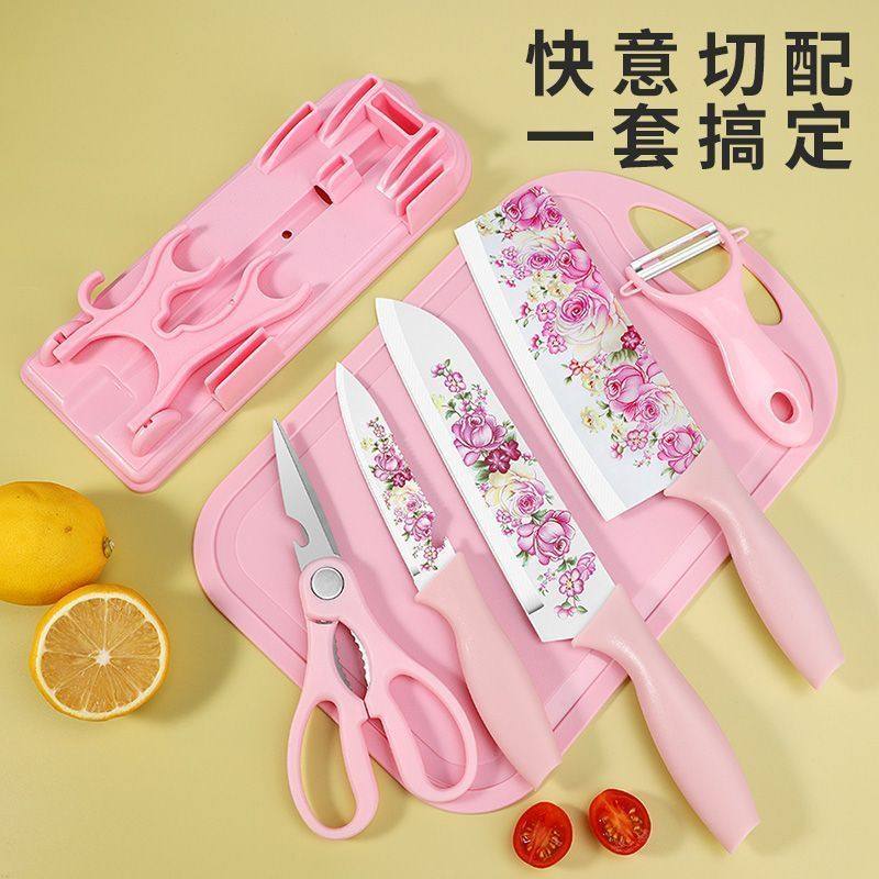 炊大皇抗菌刀具套装厨房菜刀家用防霉不锈钢切菜刀砧板二合一组合