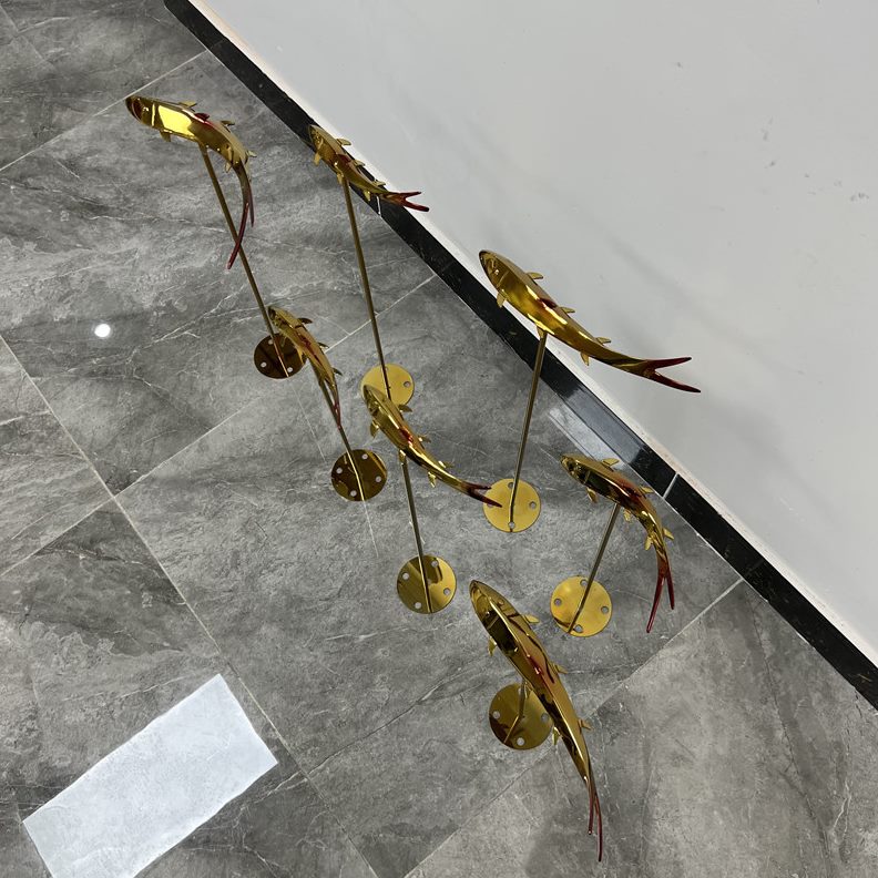 抽象金属小鱼群面镜不锈钢园林雕塑鱼水景装饰别墅摆件品金色户外