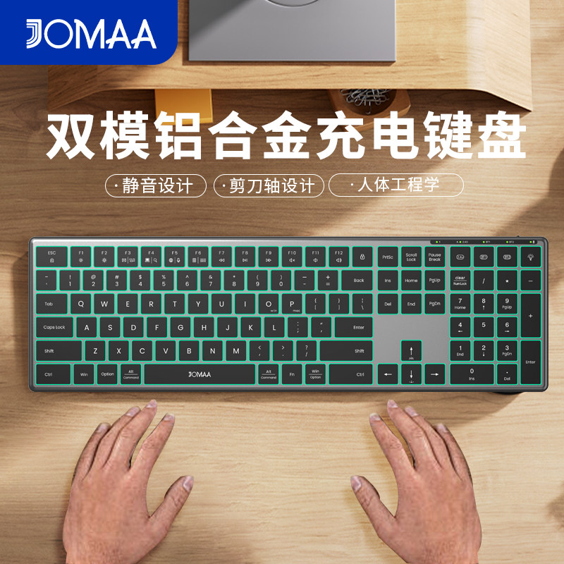 铝合金双模RGB背光静音剪刀轴键盘充电办公无线蓝牙电脑外接键盘