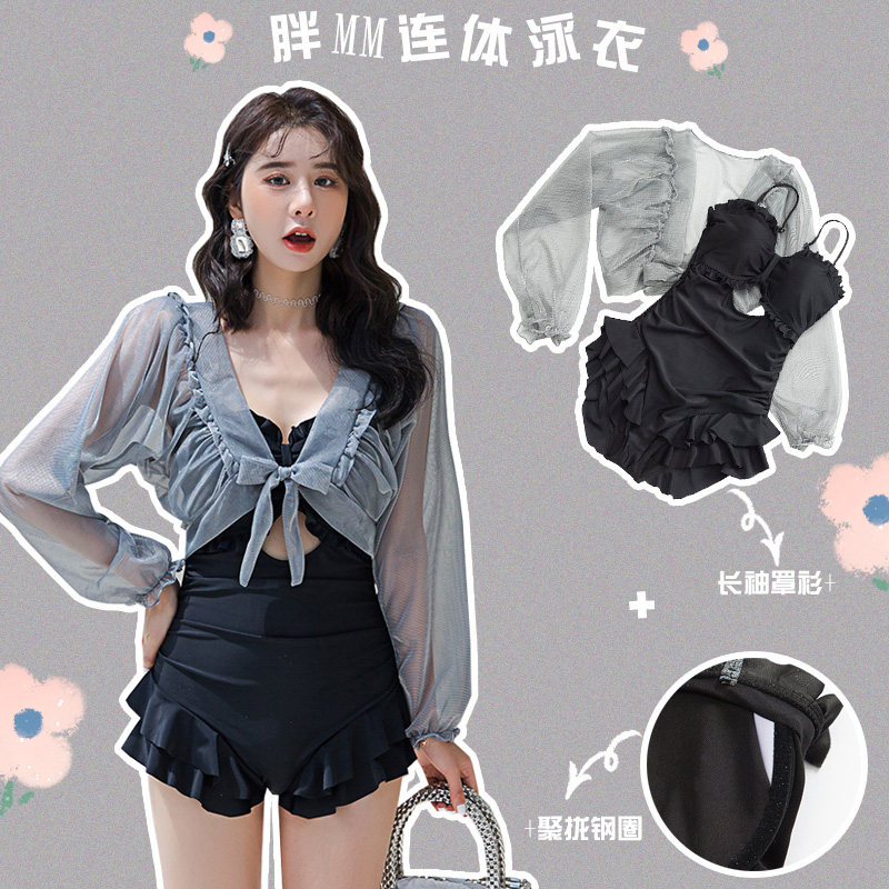 aystudio泳衣女连体性感ins原创微胖黑色小胸显瘦遮肚泡温泉