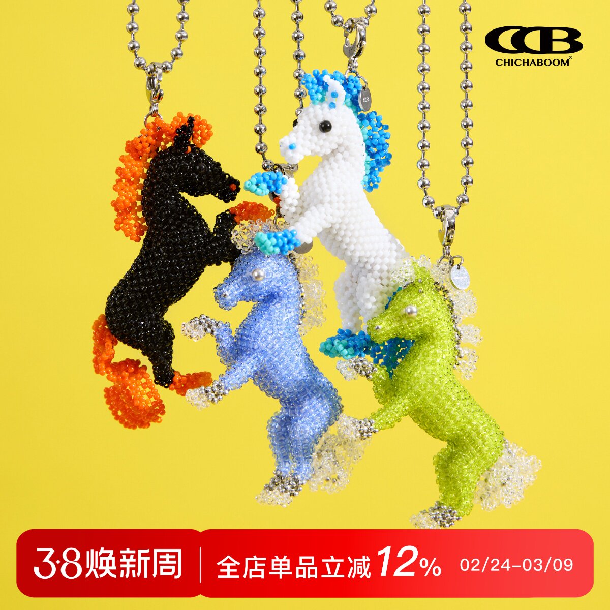 CHICHABOOM趣味手工串珠驰骋小马吊坠项链毛衣链男女款马年本命年