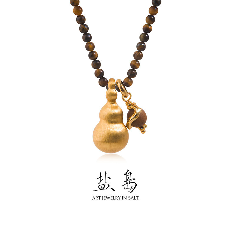 VISING珠宝金色四美葫芦吊坠项链毛衣链古法金贝母S925