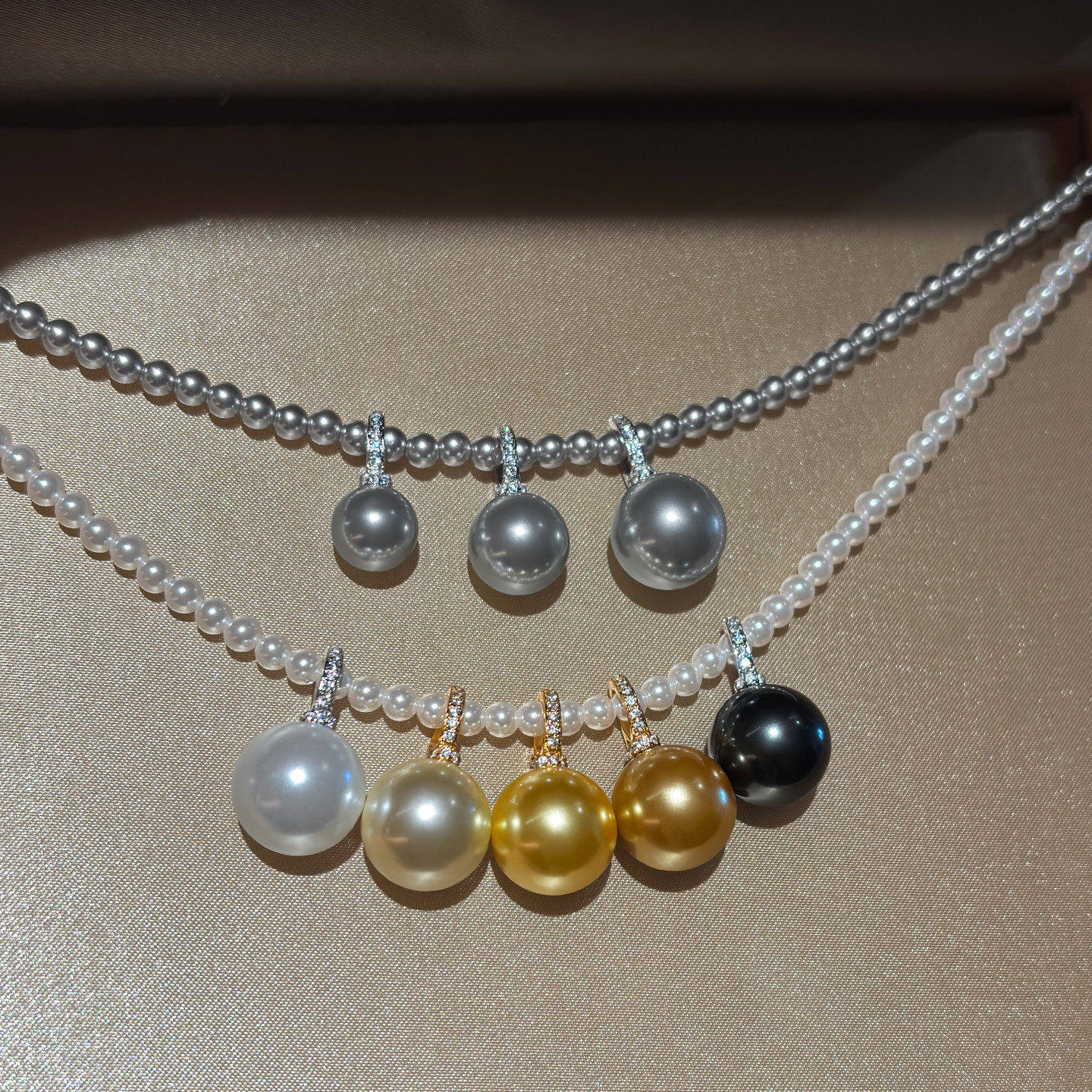 DIY灰色澳白单颗珍珠吊坠项链毛衣链配件任意扣万能扣金色单坠子