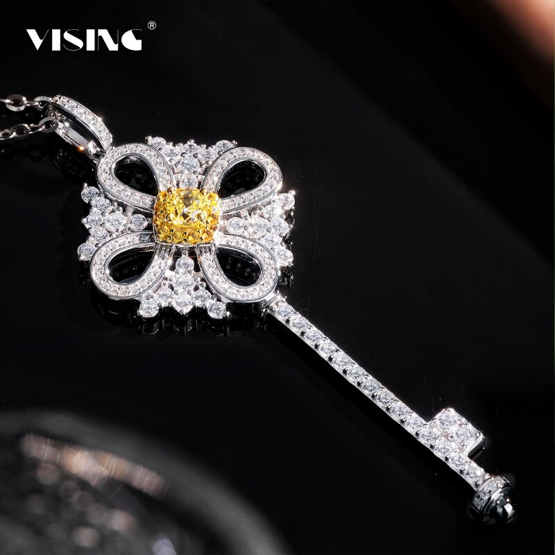 VISING珠宝黄色锆石高碳钻黄钻款钥匙吊坠项链毛衣链S925银