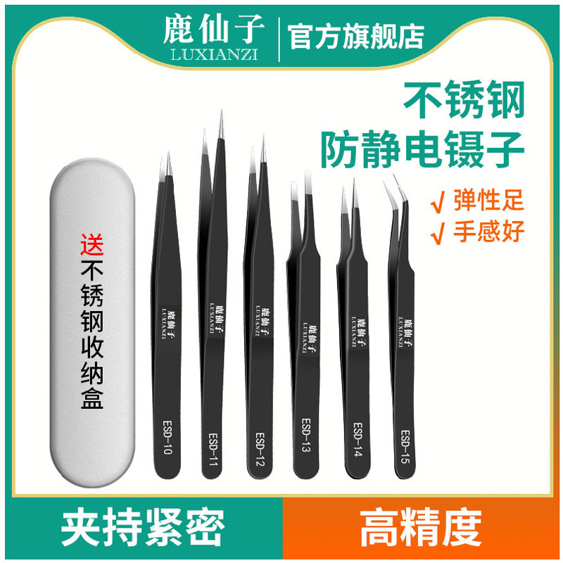 鹿仙子尖头镊子套装不锈钢高精密夹子手机维修尖嘴防静电工具焊接