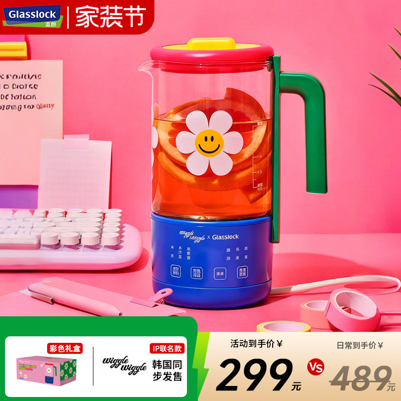 Glasslock盖朗&WiggleWiggle联名养生壶迷你办公室小型煮茶礼物