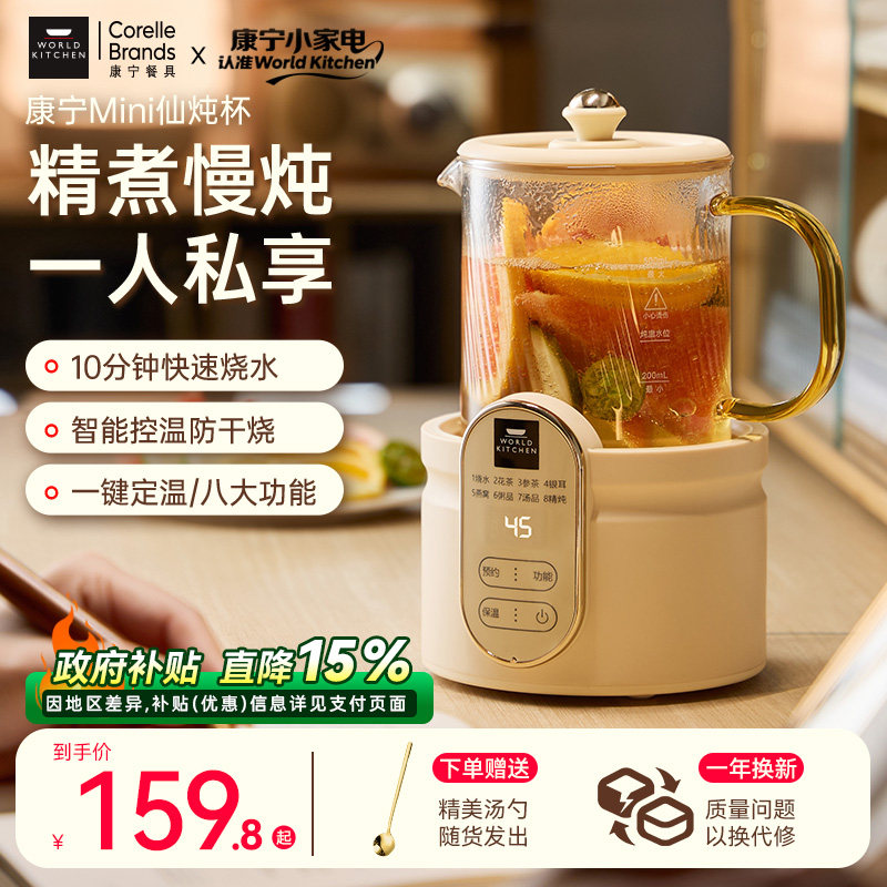 康宁迷你养生壶mini小型办公室一人全纯玻璃电炖杯养生杯煮茶壶