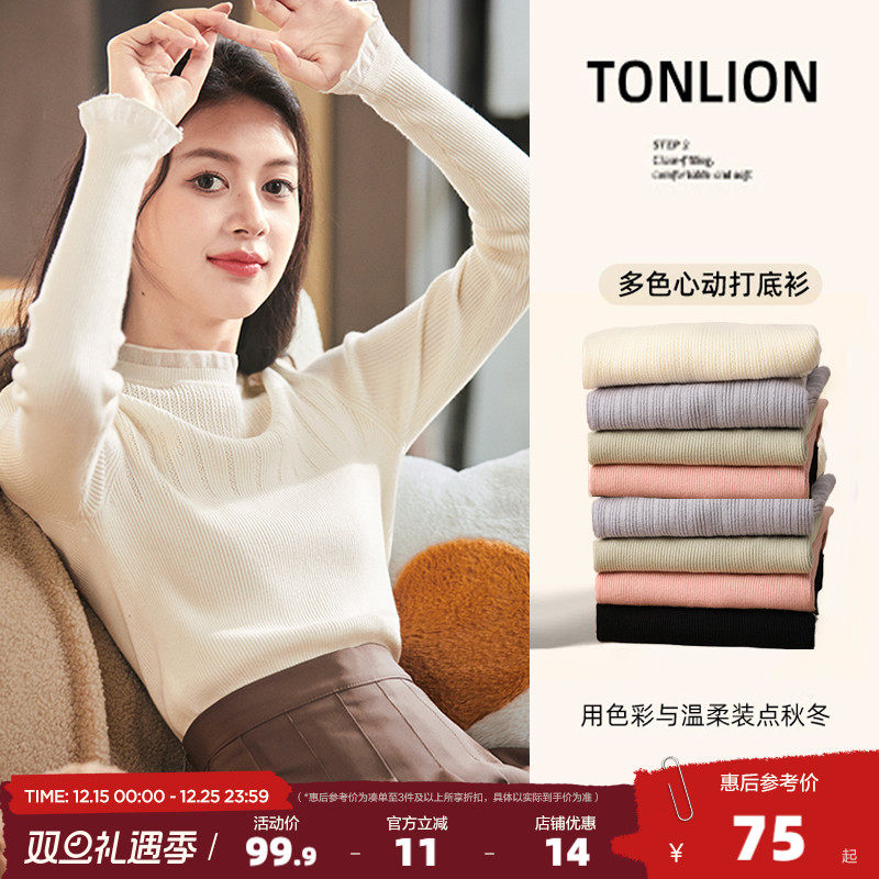 木耳边针织打底衫女秋冬新款半高领薄款紧身上衣毛衣叠穿内搭小衫