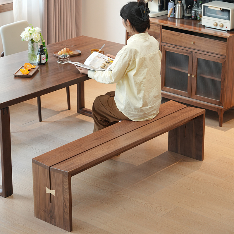 北美黑胡桃全实木长凳北欧简约餐桌椅凳家用长条凳卧室床尾换鞋凳