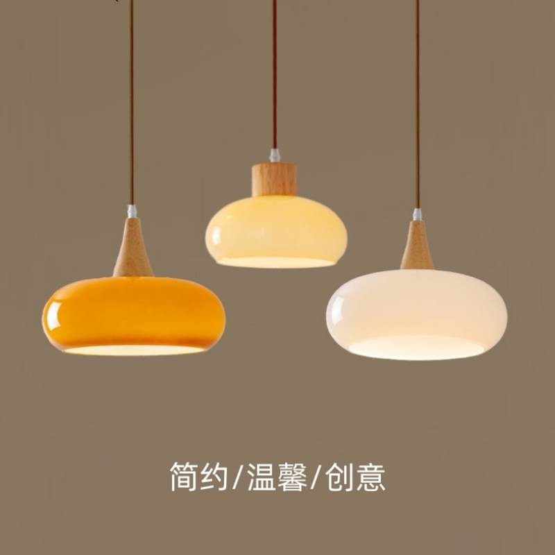 中古原木奶油风餐厅吊灯北欧简约餐桌吧台吊灯创意卧室床头小吊灯