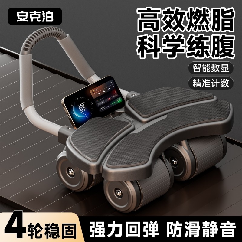 新款四轮健腹轮自动回弹卷腹轮智能计数家用腹肌训练运动健身器材