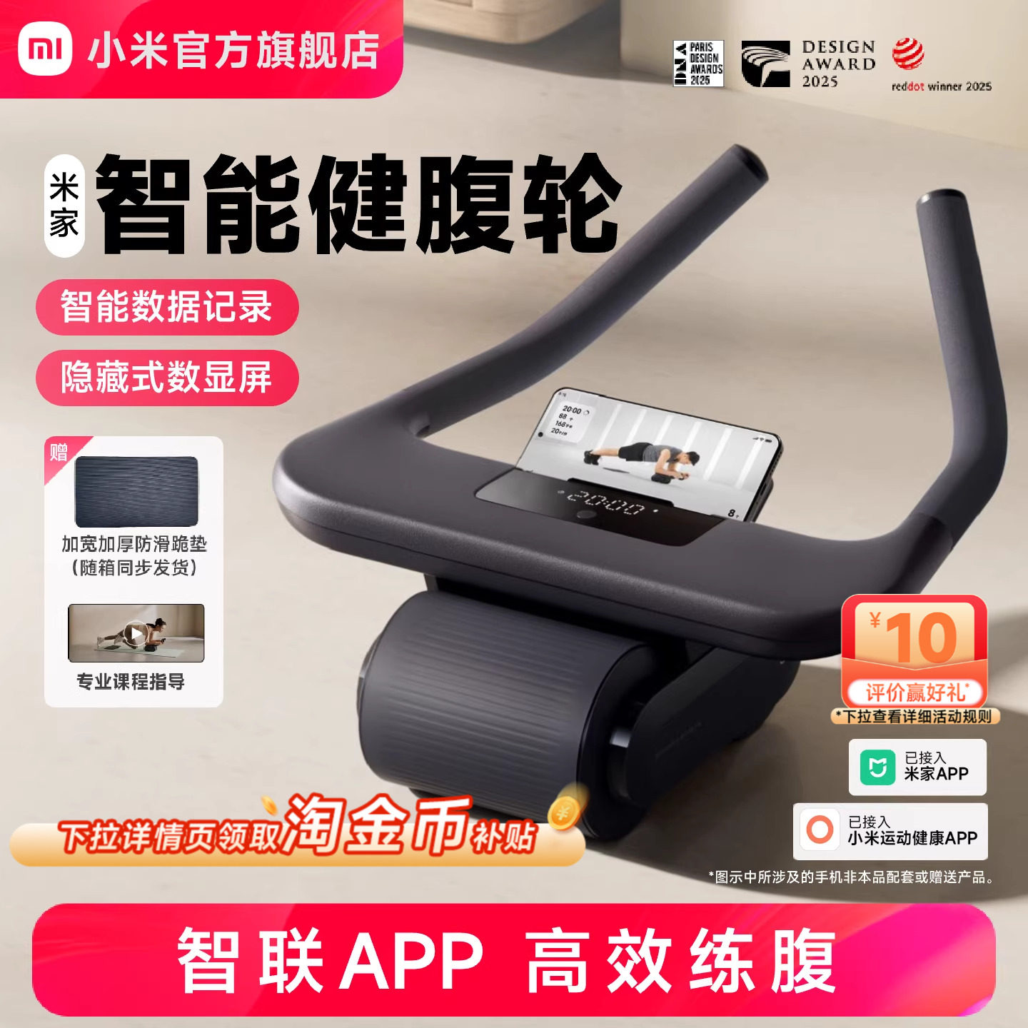 小米官方米家智能健腹轮自动回弹腹肌轮家用健身器材腹肌男生礼物