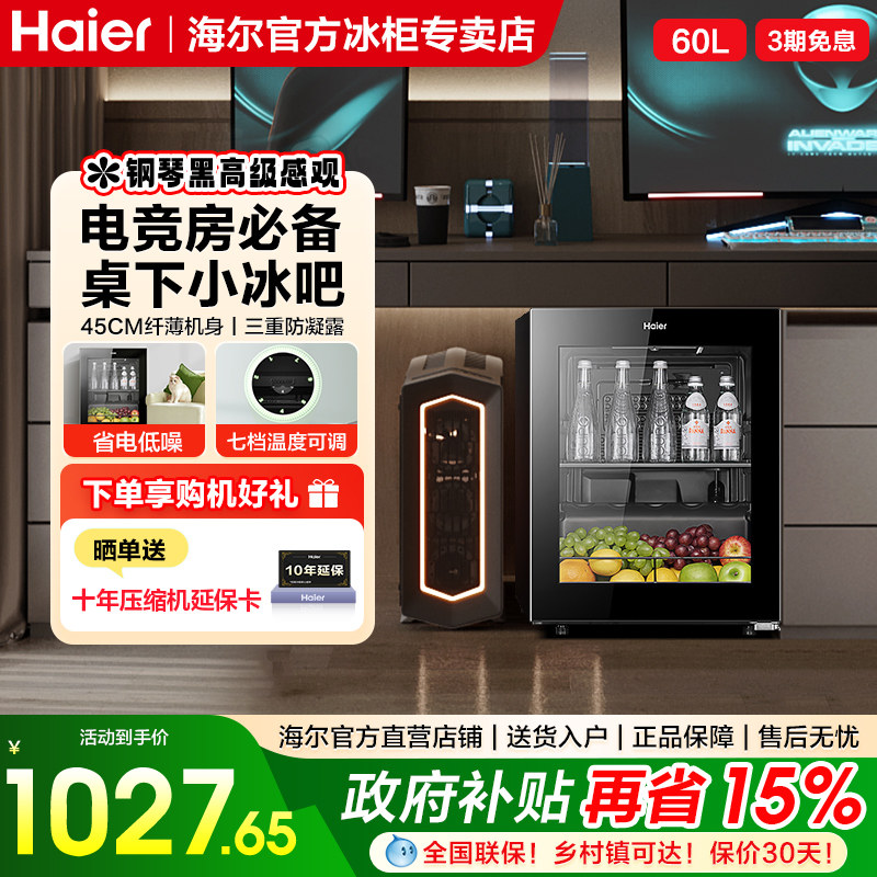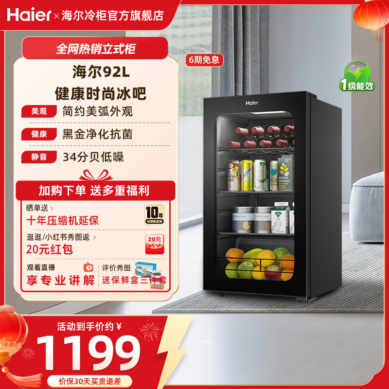 海尔haier92升冰吧小型家用客厅茶叶饮料柜办公室节能冷藏小冰箱
