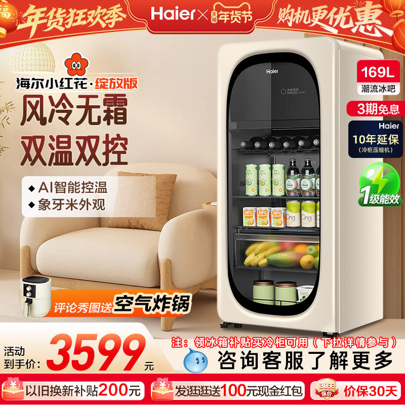 新品海尔229升元气冰吧小型冷藏保鲜家用客厅茶叶饮料柜冷冻冰箱