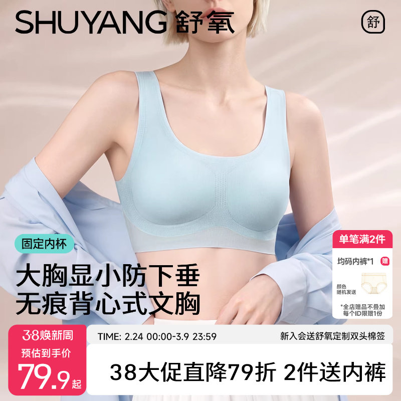 舒氧运动内衣女大胸显小无痕文胸无钢圈防下垂薄款背心式一体胸罩