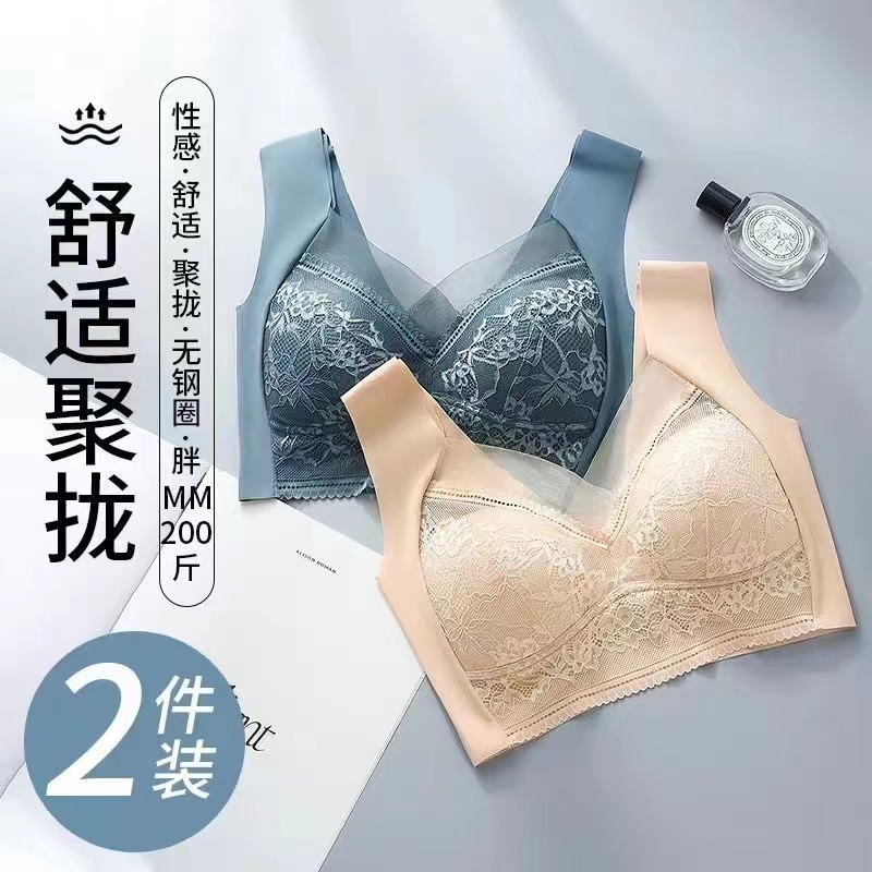 无钢圈背心式运动文胸大码蕾丝无痕冰丝内衣女聚拢防下垂美背胸罩
