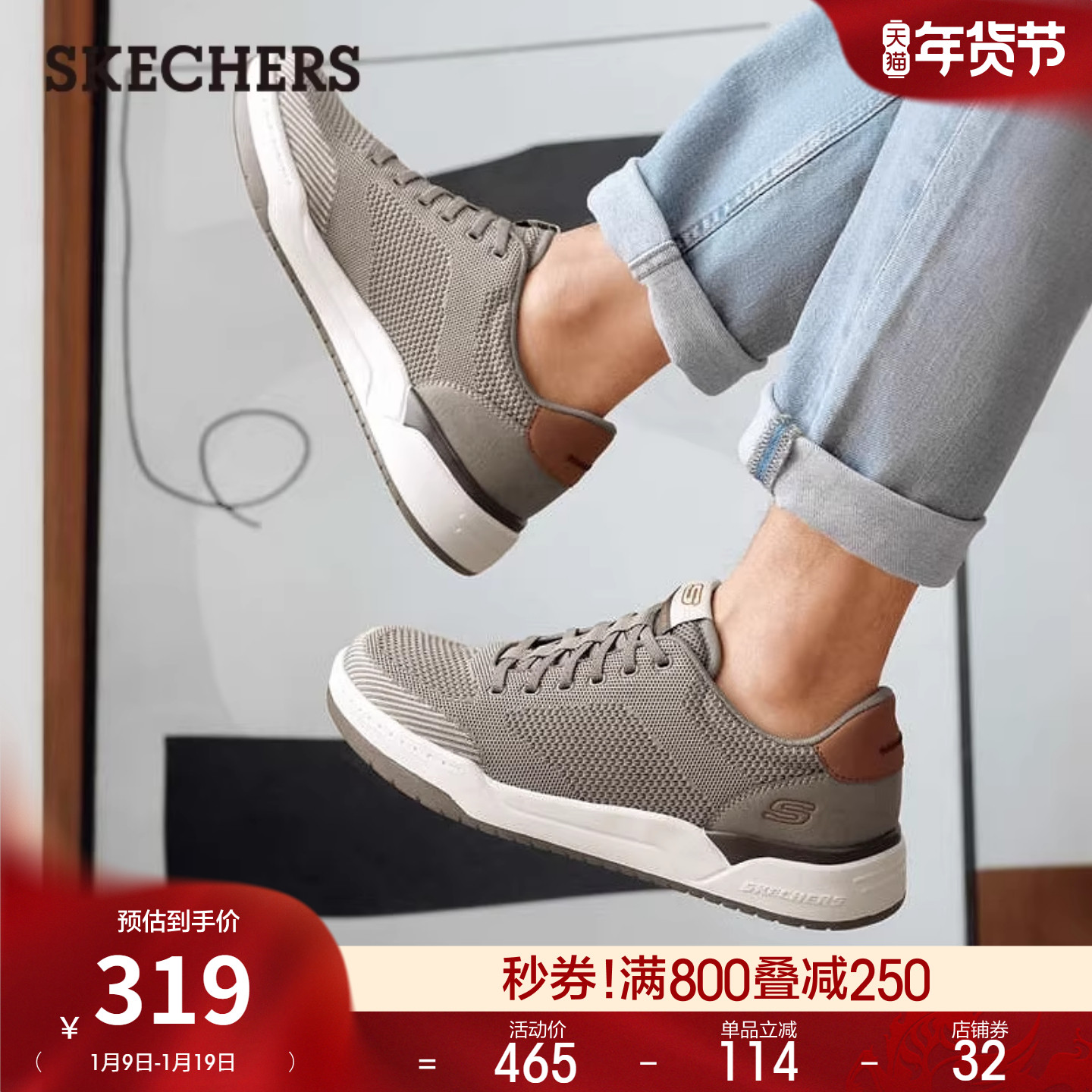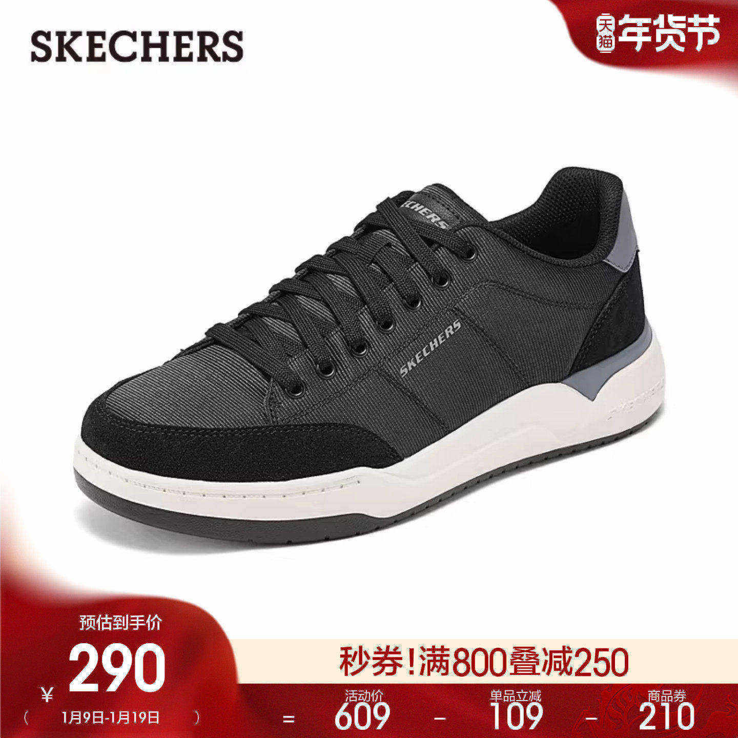【下拉享淘金币】斯凯奇男休闲板鞋轻盈耐磨橡胶底稳健抓地力耐磨