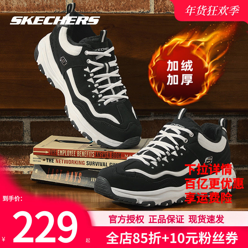 斯凯奇加绒男鞋冬季新款休闲鞋官方正品熊猫运动鞋男士保暖棉鞋子