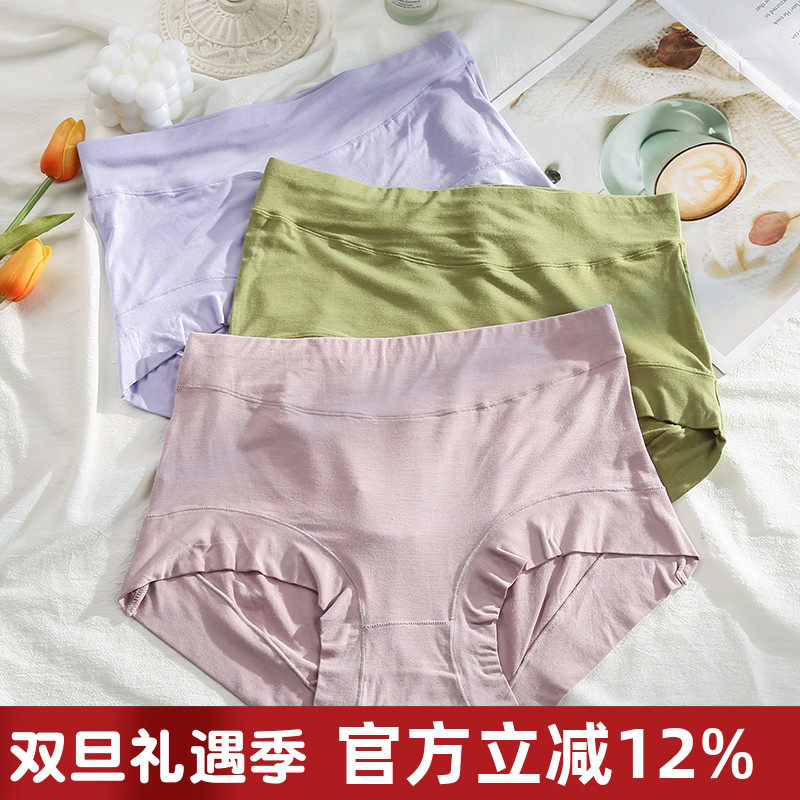 莫代尔高腰大码内裤女莫代尔胖mm透气舒适包臀加长底裆妈妈三角裤