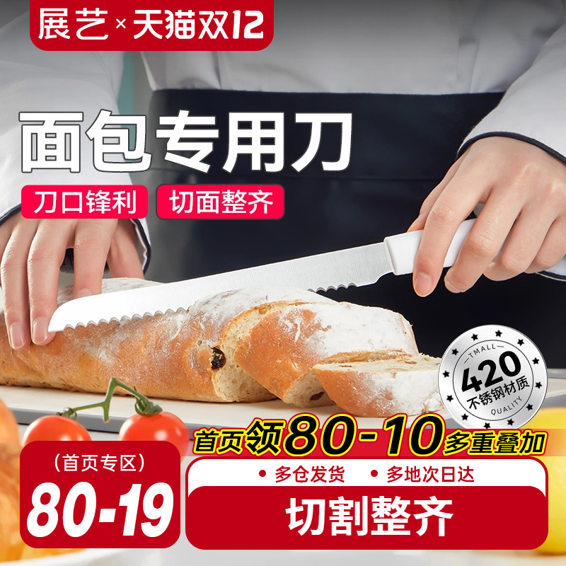 展艺面包刀锯刀吐司三明治蛋糕专用切片烘焙家用不锈钢西点锯齿刀