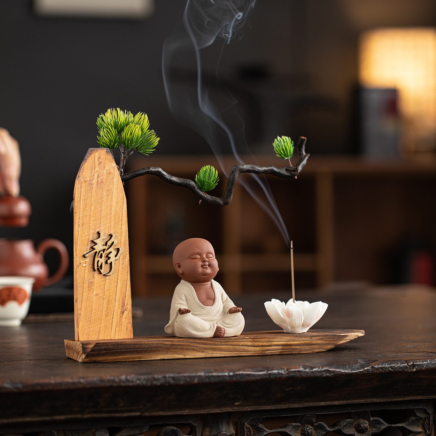 新中式禅意四不小和尚家居摆件装饰品小沙弥公仔办公室桌面小摆设