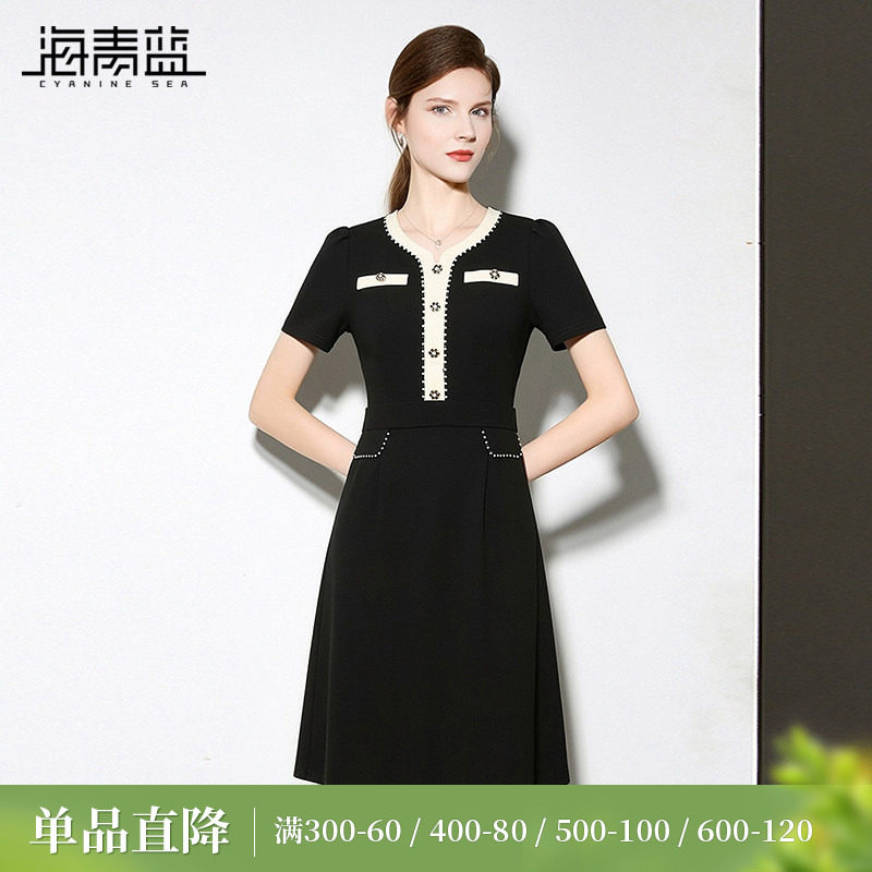 播商场同款收腰显瘦气质小黑裙女夏季新款短袖连衣裙BDS2LD2240