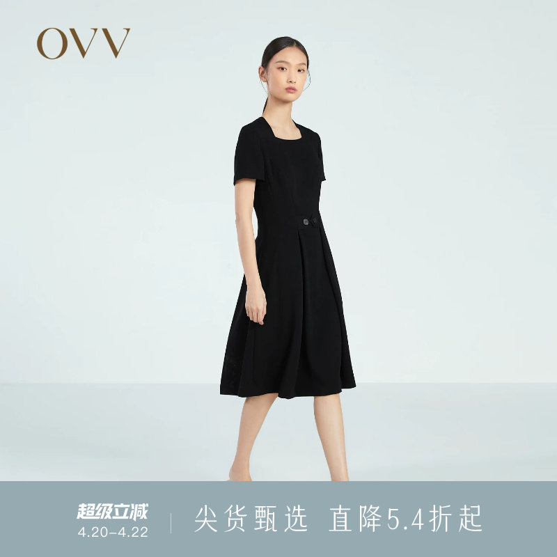 OFFIY-轻奢牌fox* 好坪无数 千金气质职业小黑裙短袖连衣裙
