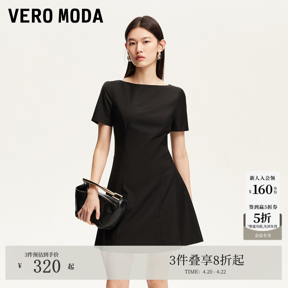 Vero Moda连衣裙25夏季收腰修身立体剪裁A摆短袖小黑裙淑女风