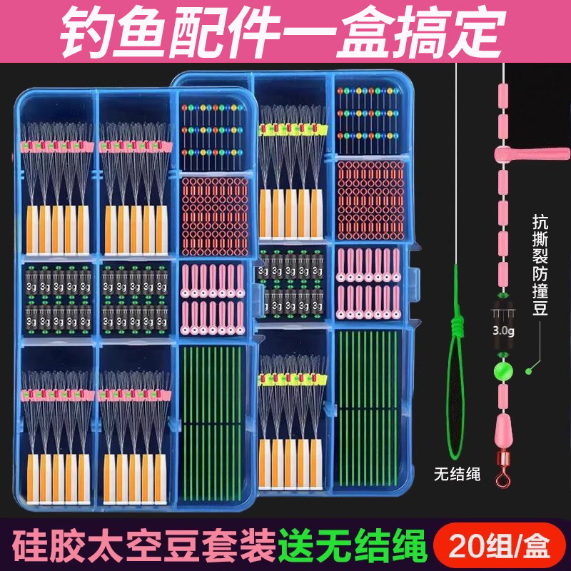 新款超紧防缠太空豆硅胶特级套装滑漂配件漂座组合主线组钓鱼配件