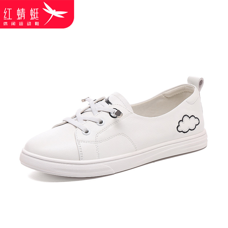 红蜻蜓浅口小白鞋女夏季新款百搭真皮免系带平底单鞋女士休闲板鞋