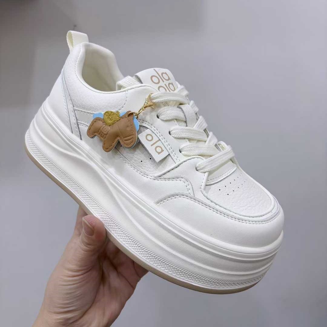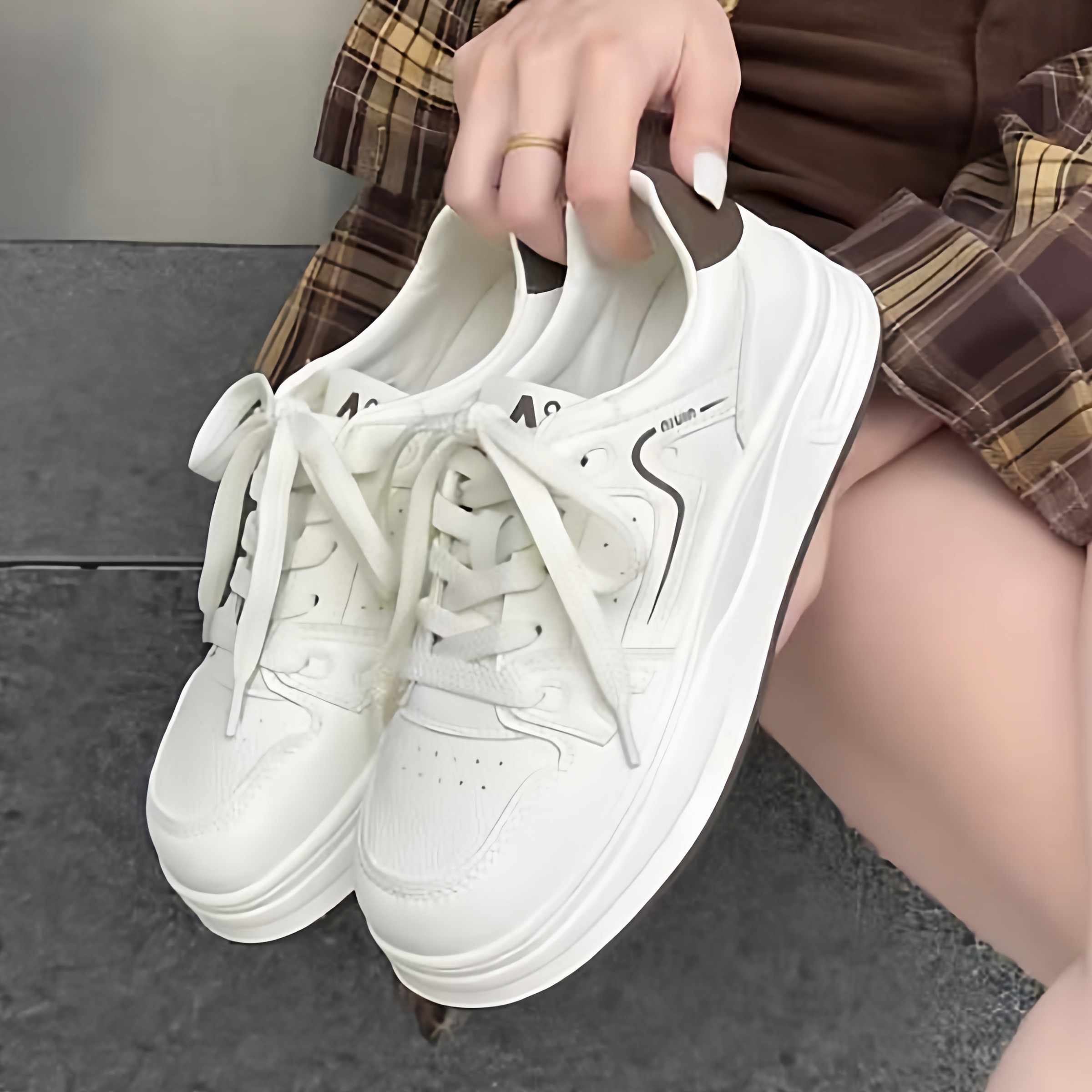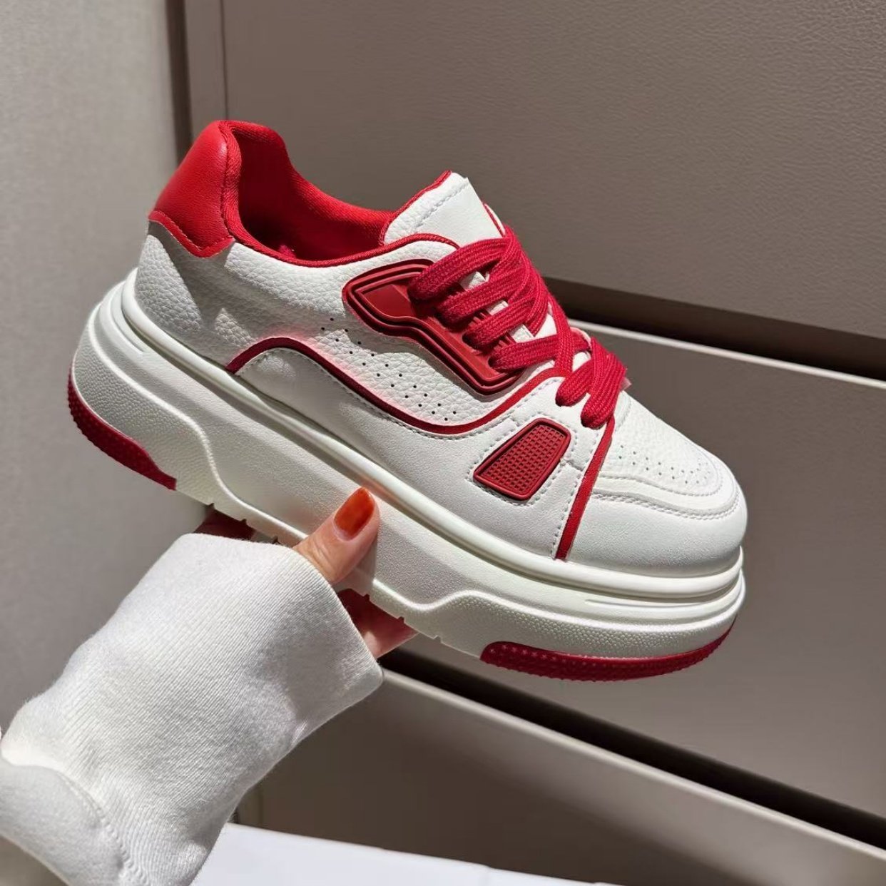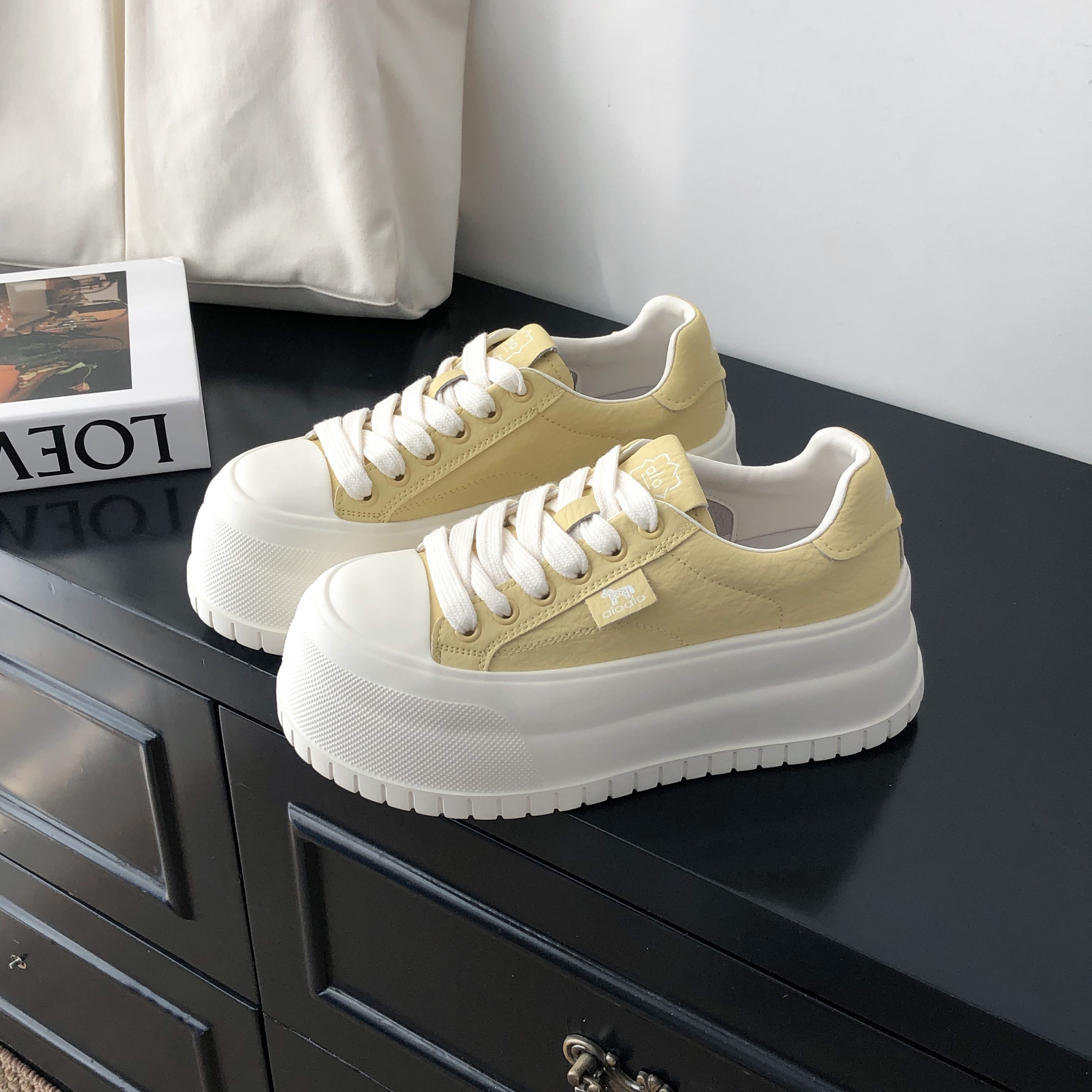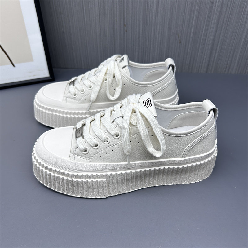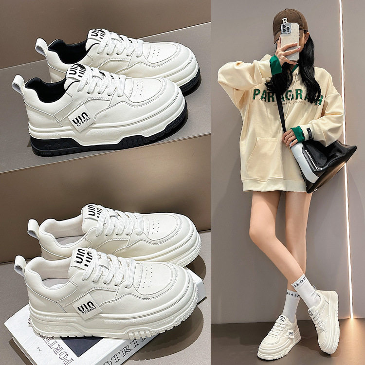 2023年春季新款真皮女士潮流舒适小白鞋爆款厚底系带休闲百搭板鞋