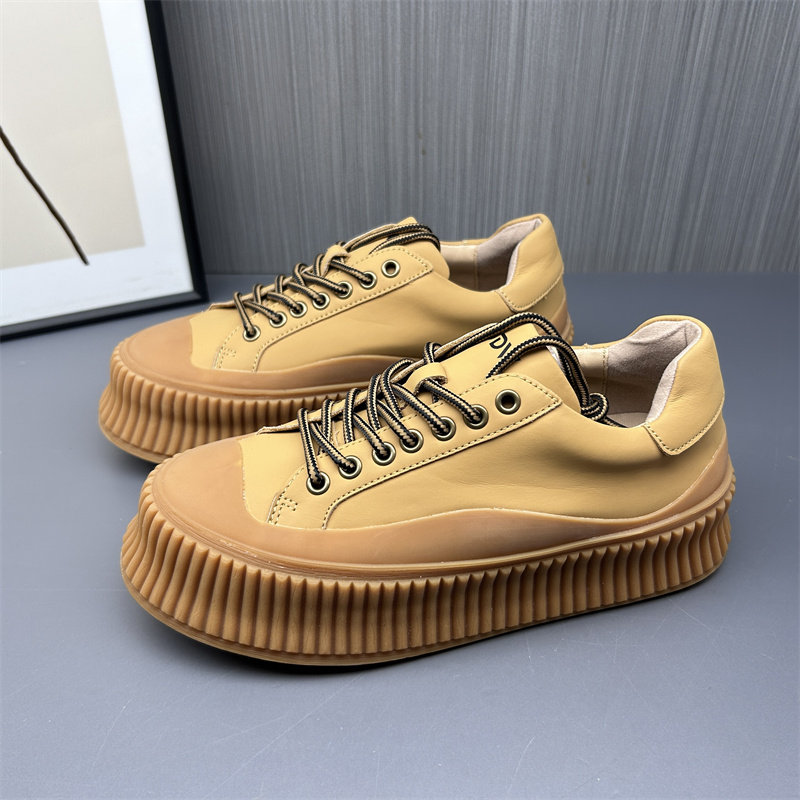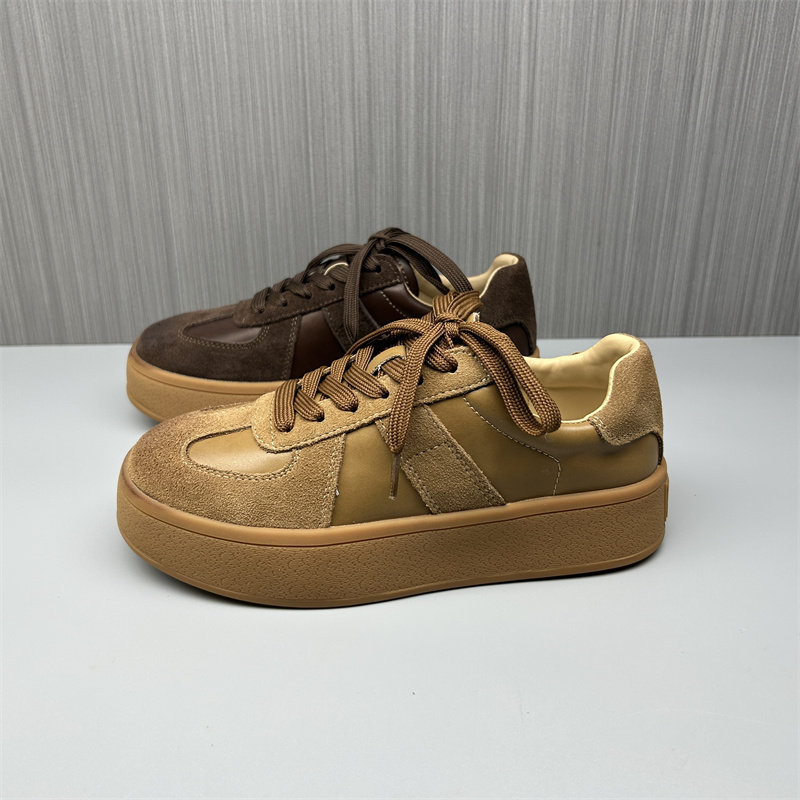 2025春季新款真皮女鞋时尚百搭圆头系带厚底德训鞋低帮女式板鞋潮