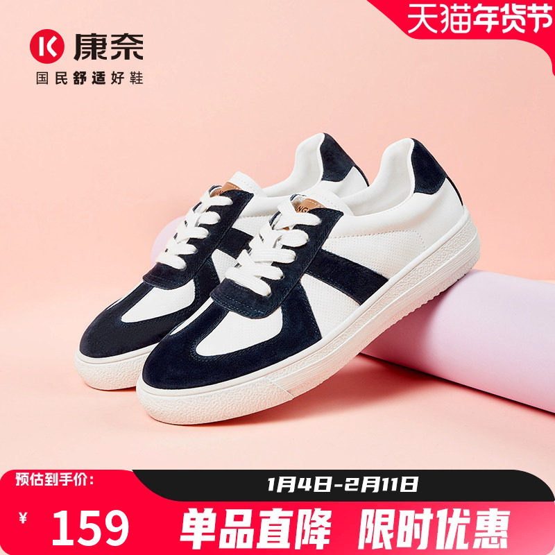 撤柜断码处理真皮德训鞋女圆头系带双色鞋带低帮女式休闲板鞋特价