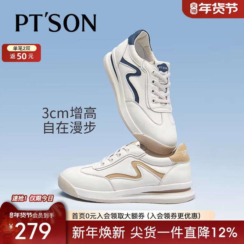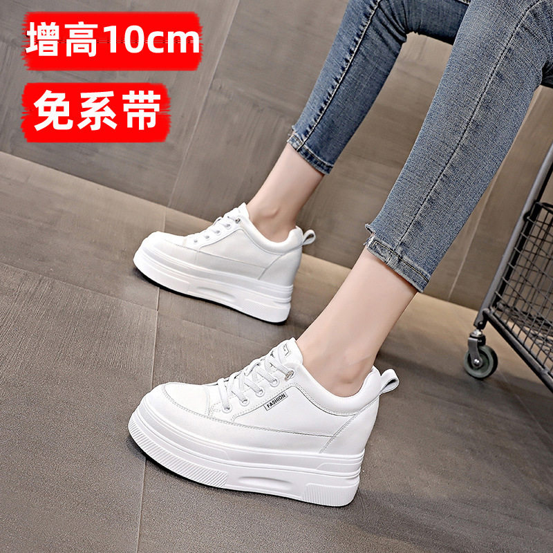 高品质内增高女士厚底真皮小个子板鞋显小白鞋免系带休闲新款女鞋