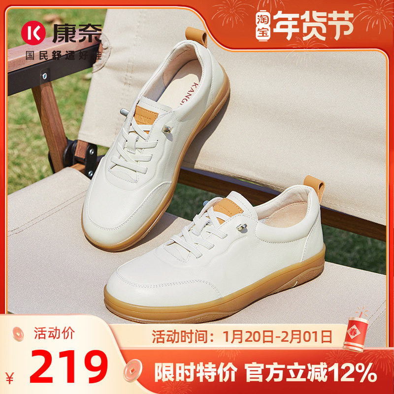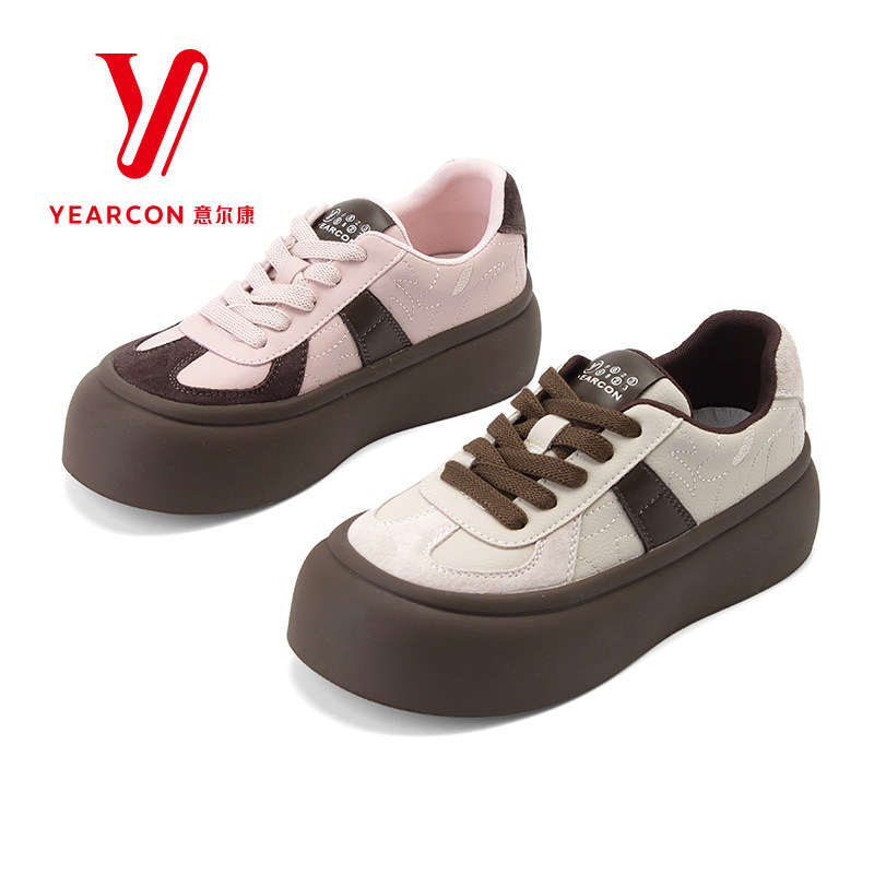 意尔康板鞋女2025春季新款女士韩版真皮系带休闲厚底轻便德训鞋女