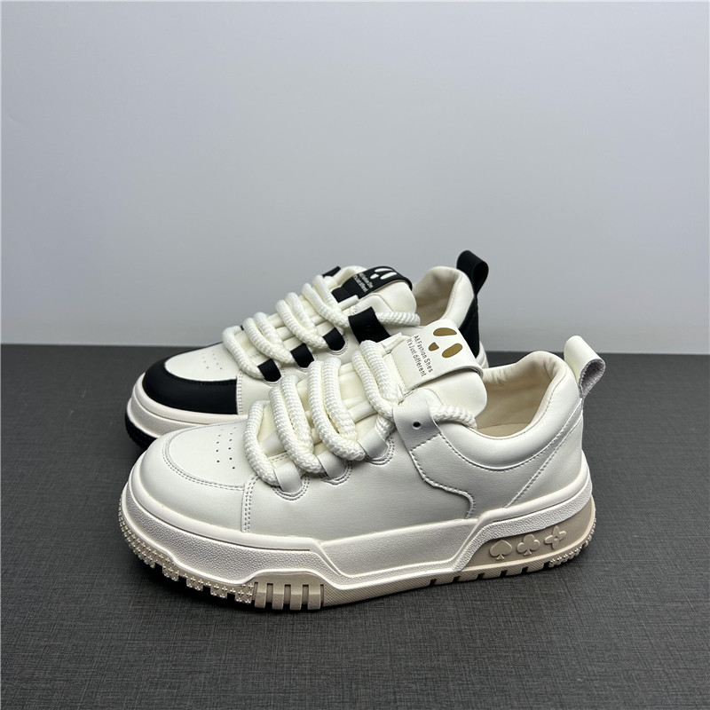 2026春季新款真皮小白鞋时尚深口系带平跟厚底学生板鞋女士单鞋