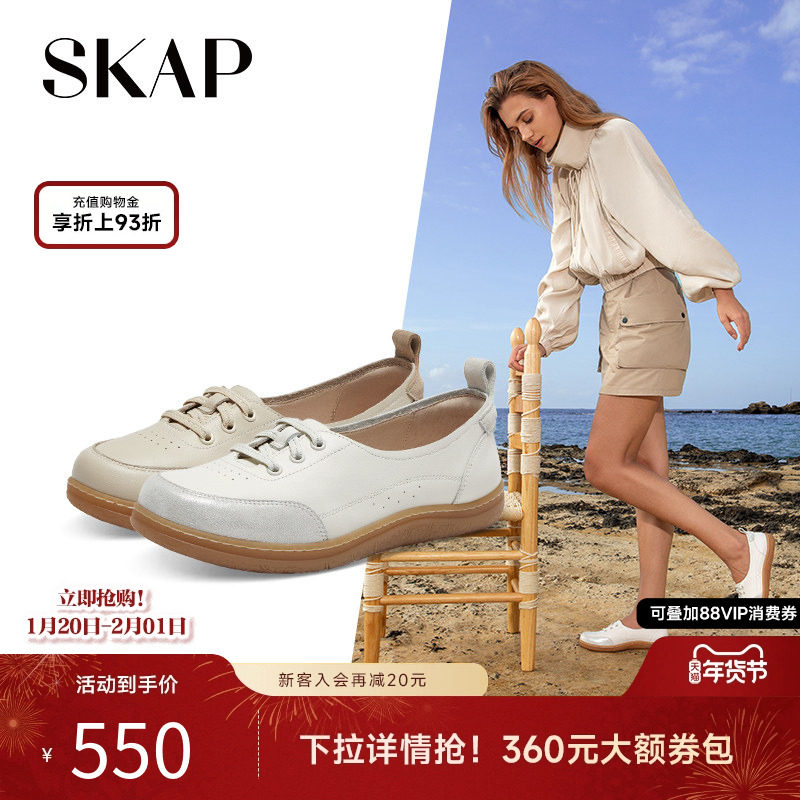 SKAP圣伽步2025秋季新款免系带舒适平底女士休闲真皮板鞋ACD11AA4