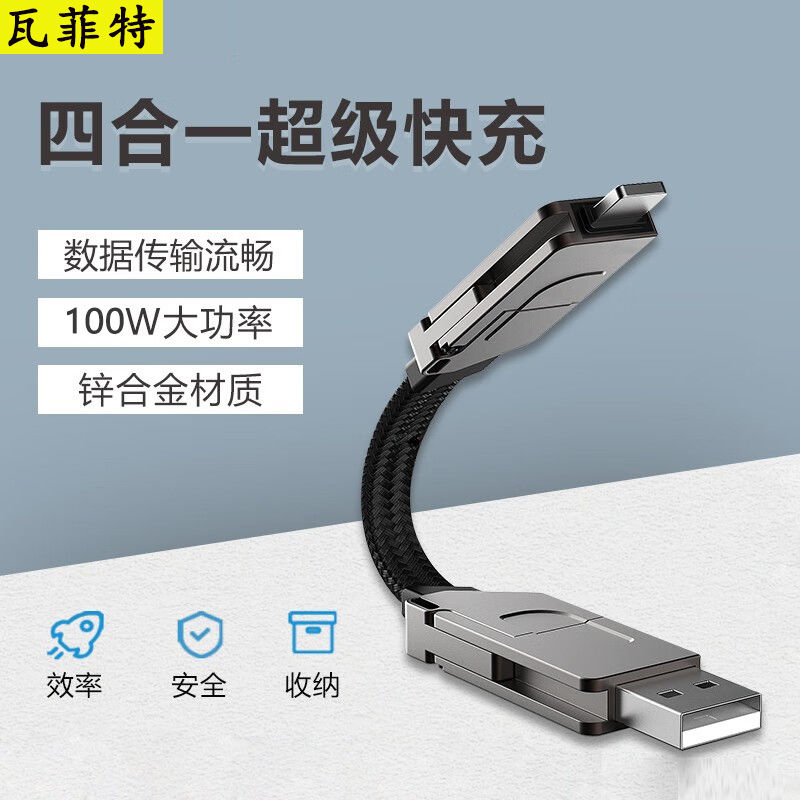 100W四合一数据线适用华为小米苹果充电宝type-c手机车载闪充电线