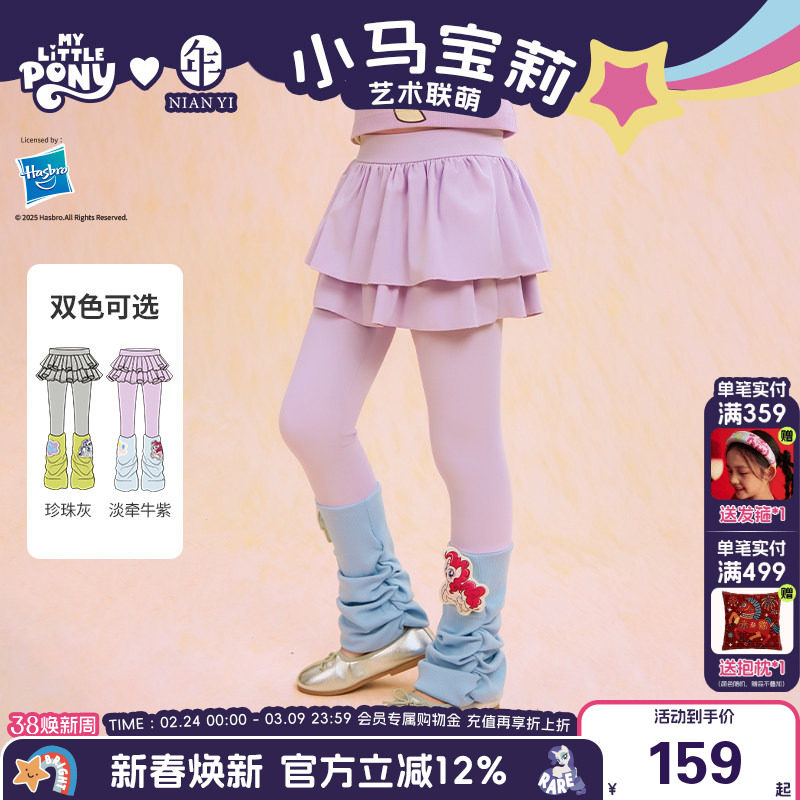 小马宝莉联名年衣童装打底裤春季新款女童卡通裙裤假两件拼接裤子