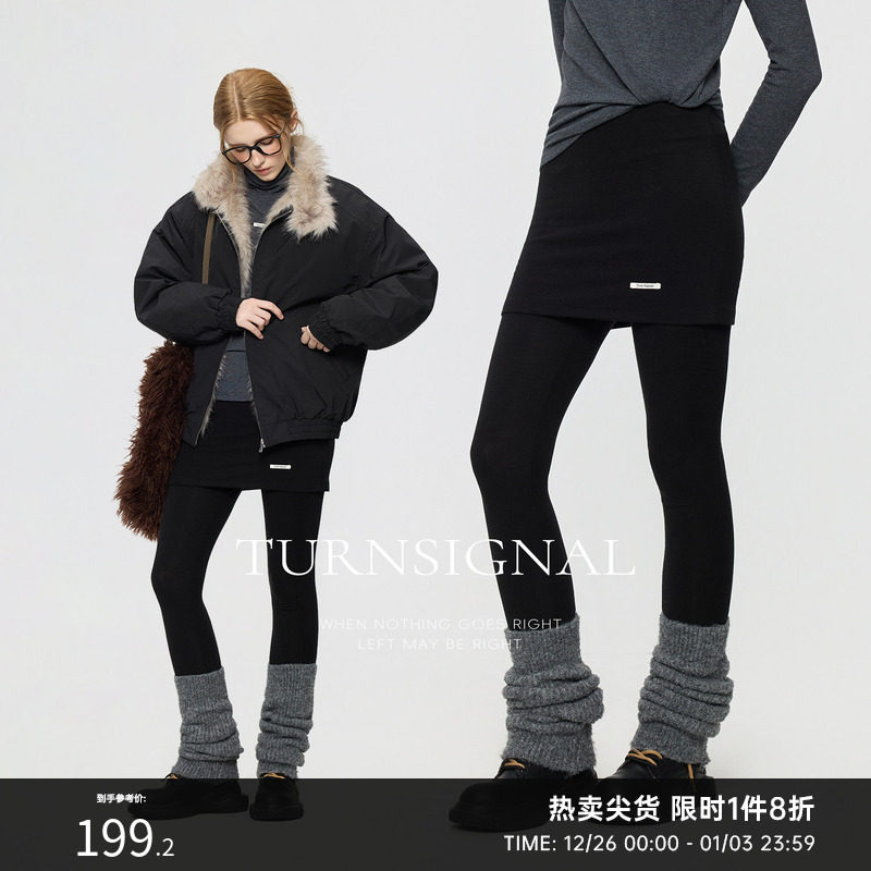 TurnSignal假两件裙裤打底裤女秋冬2025新款百搭显瘦紧身裤外穿