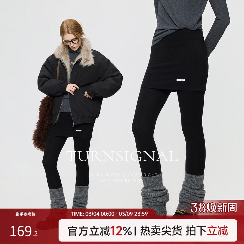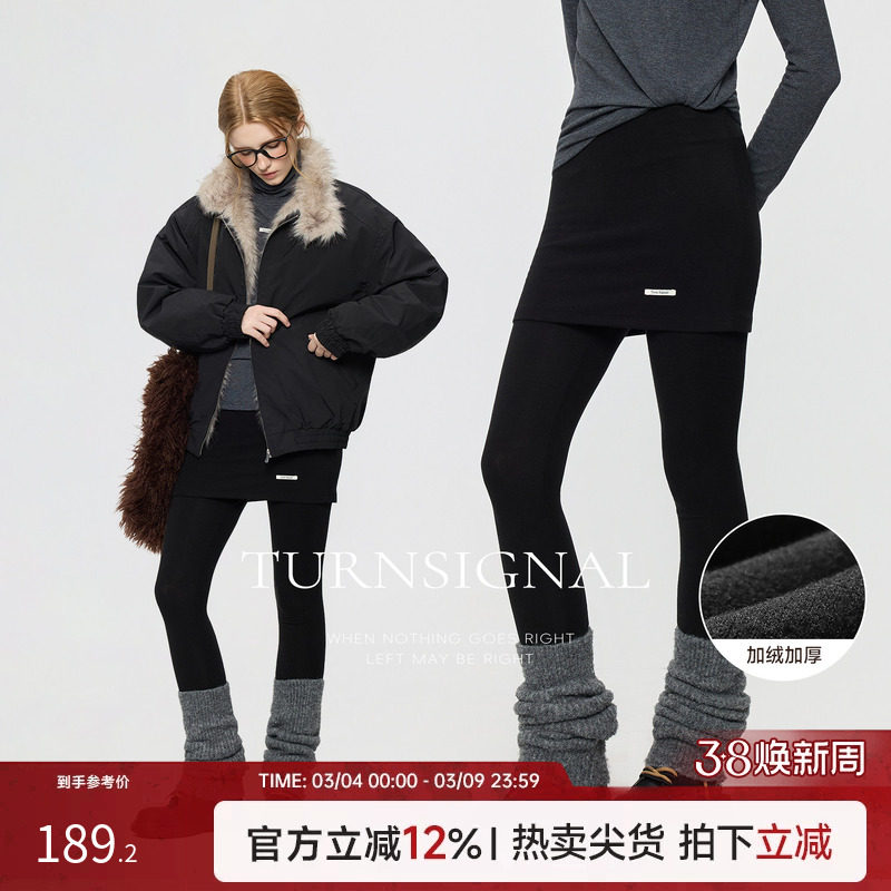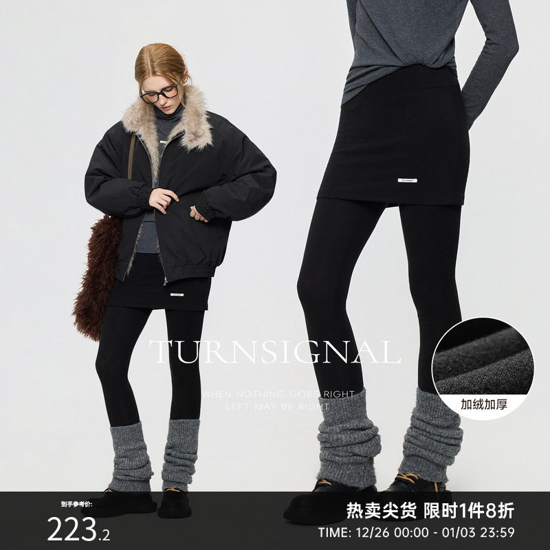 TurnSignal假两件裙裤打底裤女秋冬加绒加厚百搭显瘦紧身裤外穿