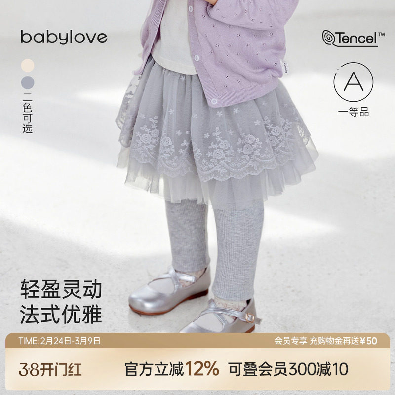 babylove女宝宝假两件纱裙春秋季百搭打底裙裤公主裙防走光半身裙