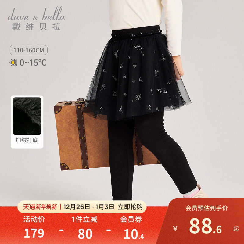 戴维贝拉女童加绒裙裤2025冬装新款儿童网纱裙子紧身弹力打底裤子