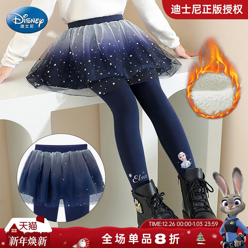 爱莎公主女童加绒打底裤2025秋冬新款女孩保暖裙裤儿童加绒裤子女