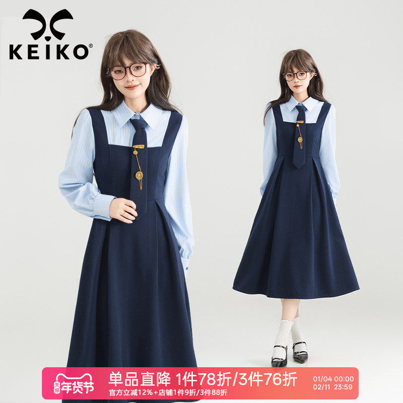 KEIKO 淑女感通勤假两件连衣裙26春季学院艺术生穿搭显瘦A字长裙